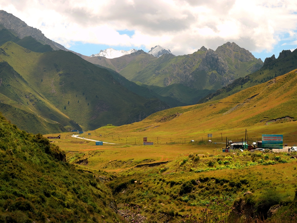 車行青海門源的柴達木盆地腹地,眺望崗什卡雪峰。