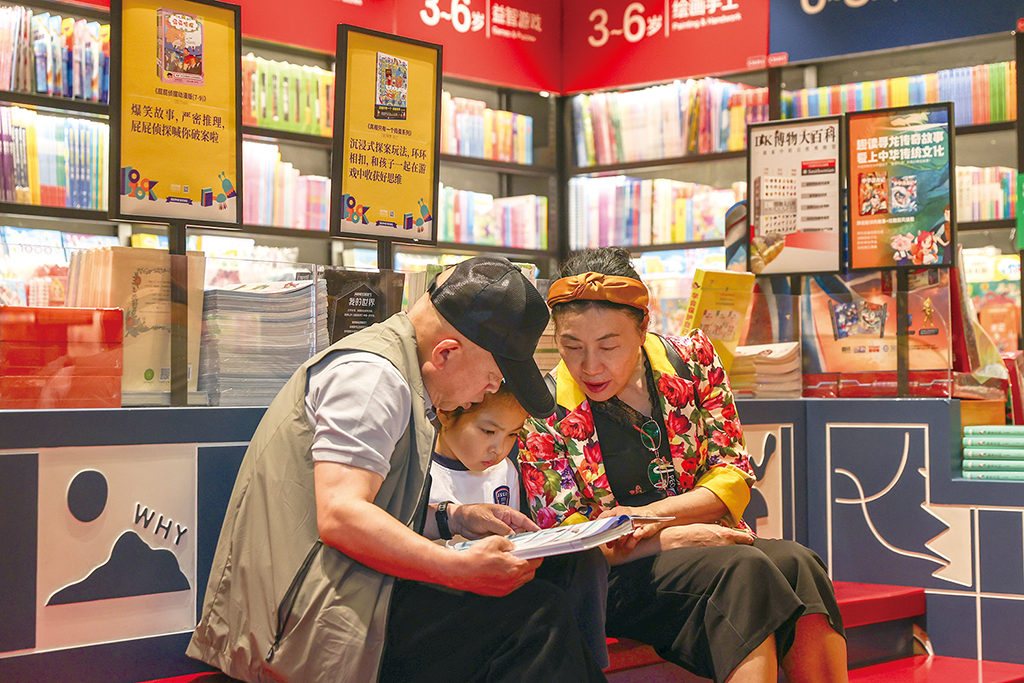 在江西南昌一家書店里,祖孫兩代人共享閱讀時光。劉力鑫 攝