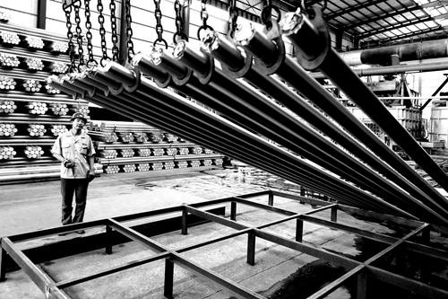 河南省海皇鋁業有限公司近年來強力實施產品“加法”戰略,探索“定位高端、品質優先、創新驅動”路徑,著力打造優質的供給端,最新推出的航空、高鐵、汽車行業專用鋁材,遠銷印度、坦桑尼亞等亞非國家。圖為6月13日,熔鑄車間內一名員工正在用遙控器操作行車,對鋁棒成品整理入庫。