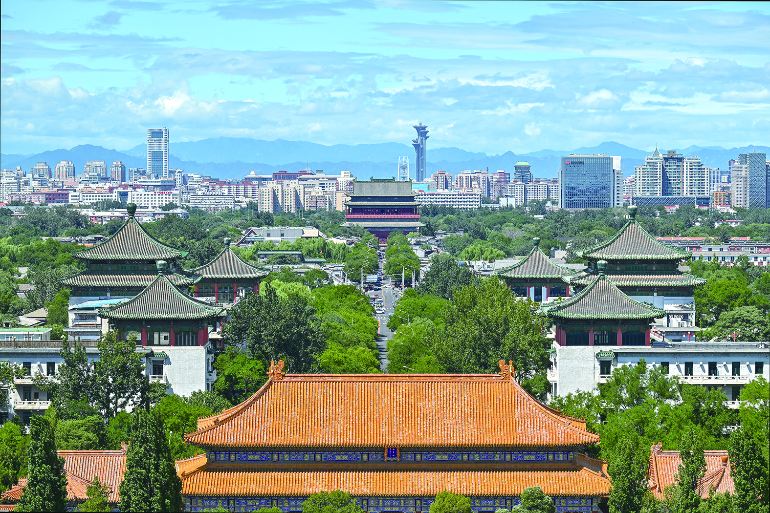 ▲ 7月27日,在印度新德里召開的聯合國教科文組織第46屆世界遺產大會通過決議,將“北京中軸線——中國理想都城秩序的杰作”列入《世界遺產名錄》。圖為8月12日從北京景山向北鼓樓方向拍攝的北京中軸線景觀。 李 鑫 攝