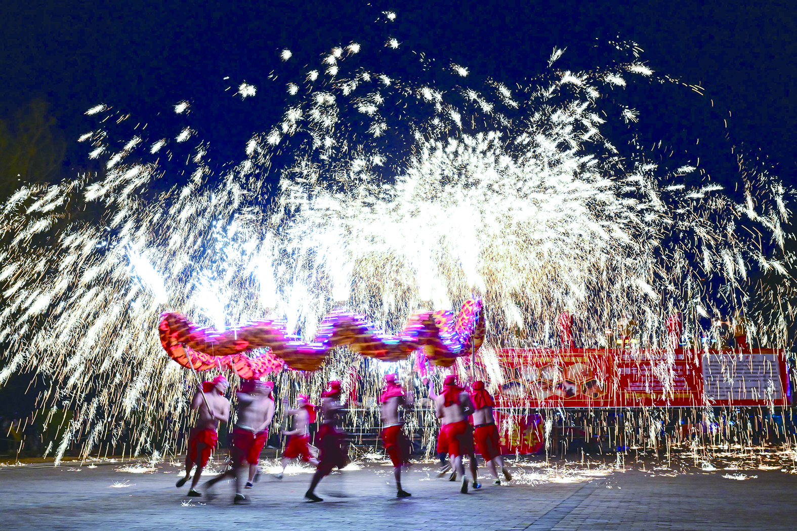 ▲ 12月4日,“春節——中國人慶祝傳統新年的社會實踐”在巴拉圭召開的聯合國教科文組織保護非物質文化遺產政府間委員會第19屆常會上通過評審,列入聯合國教科文組織人類非物質文化遺產代表作名錄。圖為2月14日,正月初五,民間藝人在河南省洛陽市2024隋唐河洛文化廟會上表演打鐵花。 李衛超 攝