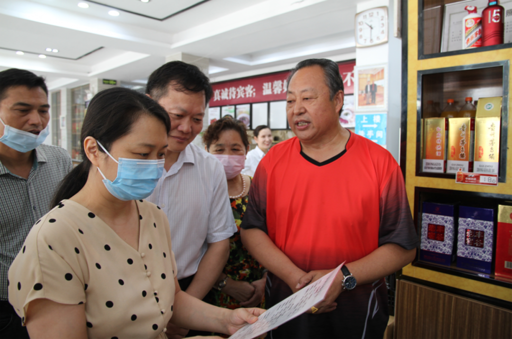 市局黨組書記、局長郭方芳(左二)檢查餐飲店