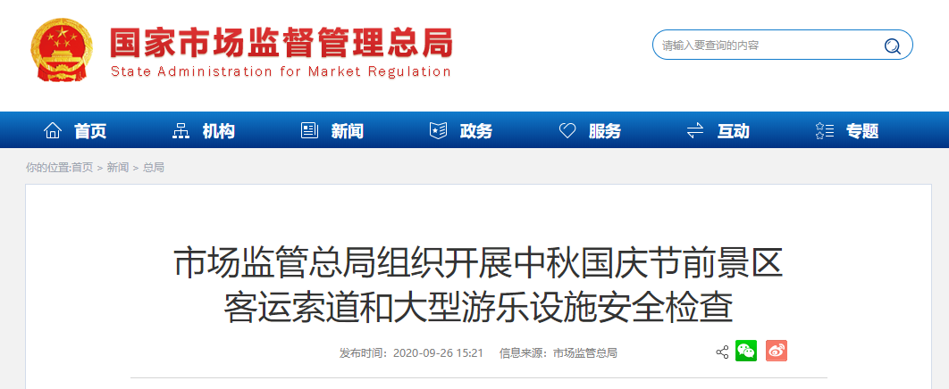 中秋國慶假期即將來臨,為保障群眾旅游游樂安全,進一步加強景區客運索道、大型游樂設施等特種設備安全工作,近日,市場監管總局辦公廳印發《關于加強中秋國慶期間景區特種設備安全工作的通知》,要求各地組織開展景區客運索道、大型游樂設施安全檢查。