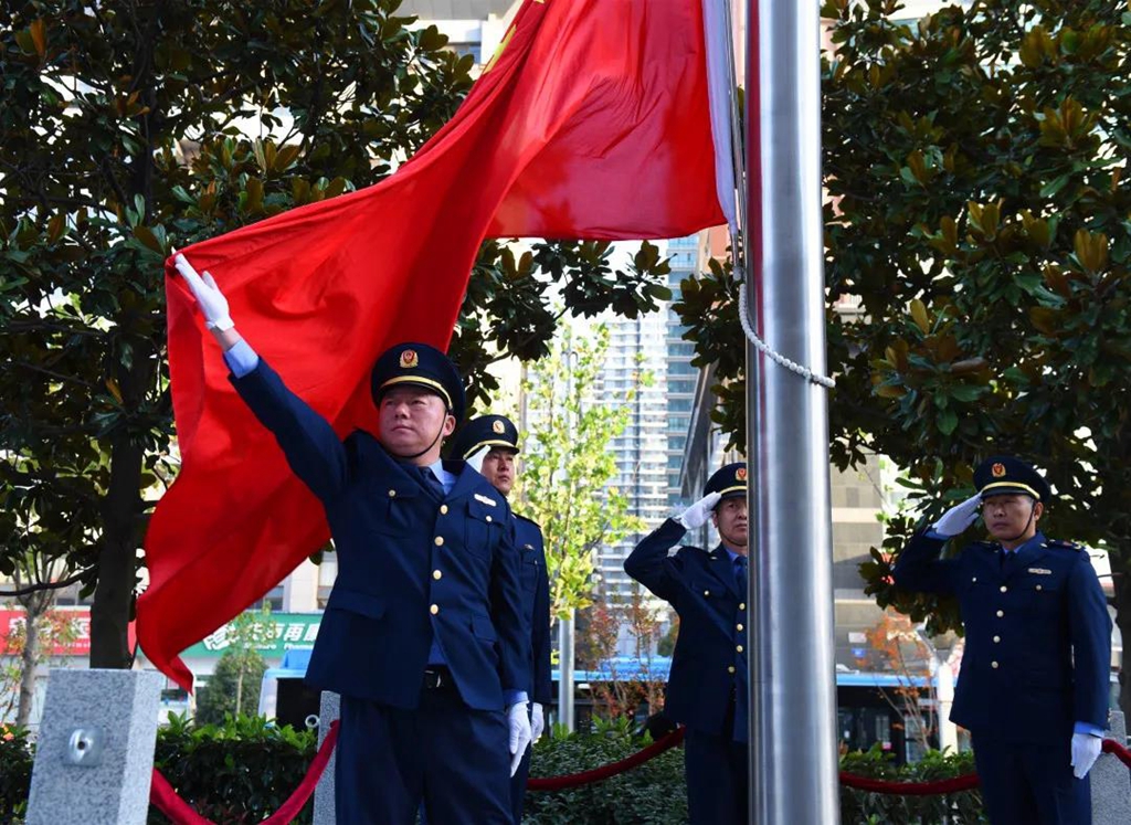 在升國旗儀式上,朱勤虎表示,旗桿在整體設計上具有特殊寓意。它有4層臺階,代表著省市縣鄉4級市場監管機關;有5根護欄石柱,代表著省局成立時的5個主要組成部門;有20.18米高,代表著省局組建于2018年。旗桿底座上刻有“守住底線、營造環境、規范競爭、提升質量、促進發展”20個字,標示著市場監管的基本工作思路。