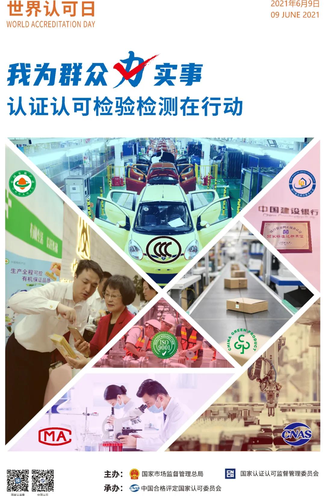 第十四個世界認可日即將到來。日前,2021年世界認可日海報正式發布,主題是“我為群眾辦實事——認證認可檢驗檢測在行動”。世界認可日是世界各國宣傳和推動認證認可檢驗檢測工作的共同節日。為推動認證認可檢驗檢測在全球的廣泛發展,國際認可論壇(IAF)和國際實驗室認可合作組織(ILAC)聯合將每年6月9日確定為世界認可日。每年世界認可日前后,世界各國都會開展相關宣傳推廣活動。
