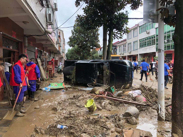 中國質量新聞網訊 近日,湖北隨州突降特大暴雨,隨縣柳林鎮災情嚴重。肆虐的洪水,逝去的親人,泥濘不堪的家園,讓柳林鎮的人民陷入了巨大的悲痛之中,有一抹“志愿藍”及時奔赴救災一線,給柳林鎮人民帶來了災后重振新生活的信念和力量,他們身穿藍雨衣、紅馬甲、黑雨靴,全力進行災后清淤工作。在這群“志愿藍”中,有著隨州市市場監管局五名青年干部,他們第一時間響應號召,主動報名前往防汛救災一線。