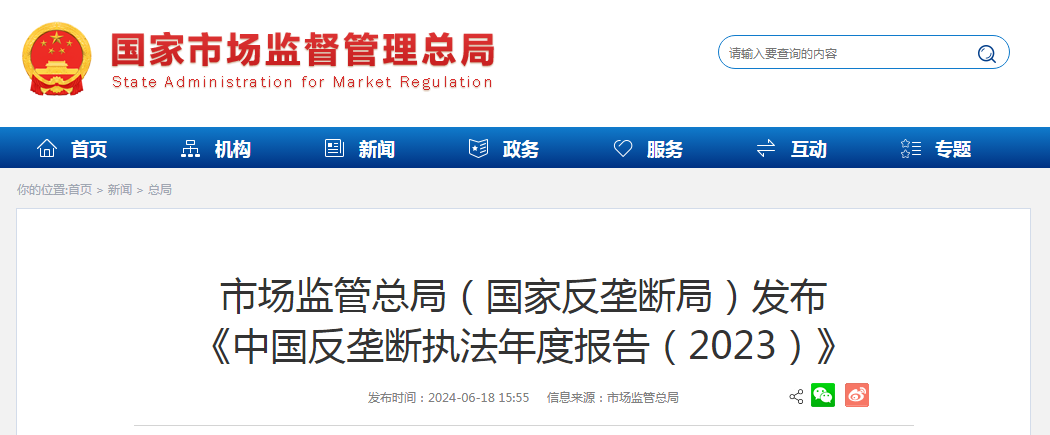 《報告》指出,2023年,市場監管總局(國家反壟斷局)堅決貫徹落實黨中央、國務院決策部署,聚焦經濟建設這一中心工作和高質量發展這一首要任務,著力加強反壟斷監管執法,全年共查處壟斷協議、濫用市場支配地位案件27件,罰沒金額21.63億元;查處濫用行政權力排除、限制競爭案件39件;審結經營者集中案件797件;牢牢抓住加快建設全國統一大市場這個重點,著力強化競爭政策基礎地位,高效推進制度機制建設,大力弘揚公平競爭文化,深化拓展國際交流合作,不斷提升公平競爭治理效能,為優化公平競爭市場環境、促進產業優化升級、推動經濟回升向好作出了積極貢獻。