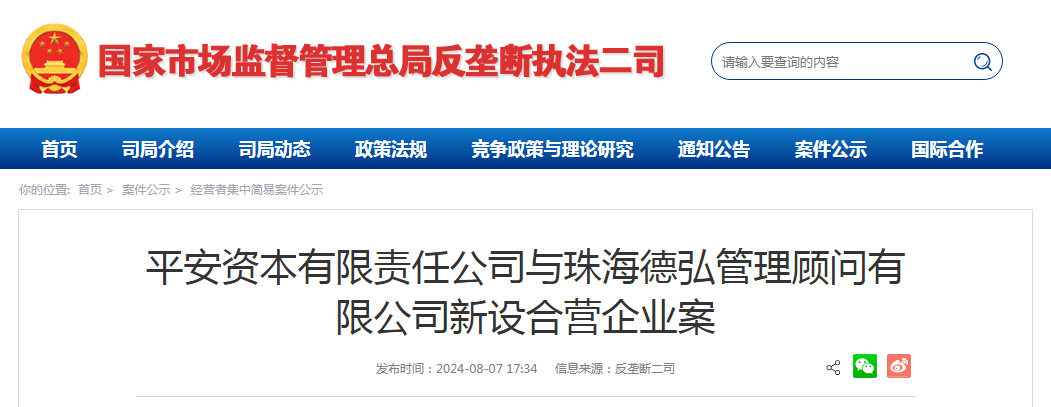 平安資本有限責任公司與珠海德弘管理顧問有限公司新設合營企業案.docx