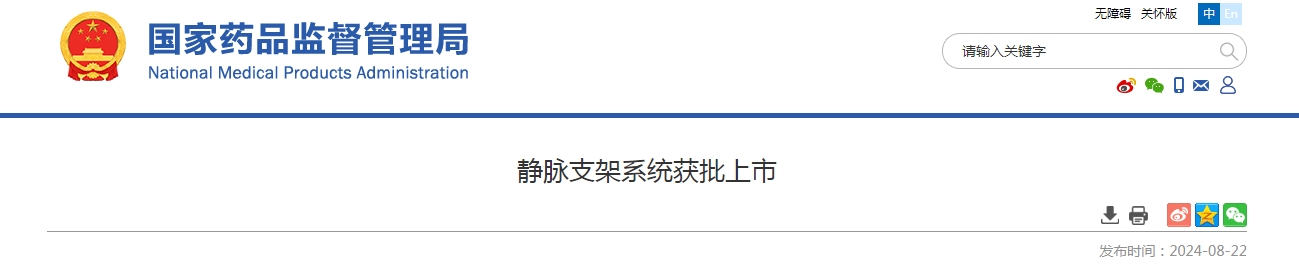 近日,國家藥品監督管理局批準了上海藍脈醫療科技有限公司“靜脈支架系統”創新產品注冊申請。
