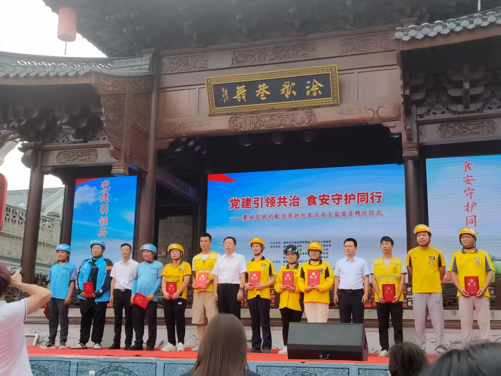 中國質量新聞網訊 6月6日,湖北省襄陽市市場監管局以襄城區為試點,在管家巷文化休閑街區舉行“黨建引領共治 食安守護同行”襄城區網約配送員擔任食品安全監督員聘任儀式,首批11名食品安全監督員獲頒聘書。襄陽市市場監管局黨組成員、總工程師申克慶出席活動。