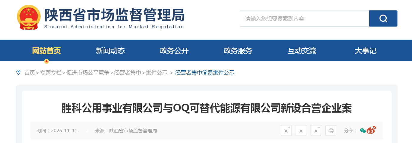 勝科公用事業有限公司與OQ可替代能源有限公司新設合營企業案