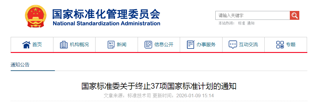 國(guó)家標(biāo)準(zhǔn)委關(guān)于終止37項(xiàng)國(guó)家標(biāo)準(zhǔn)計(jì)劃的通知