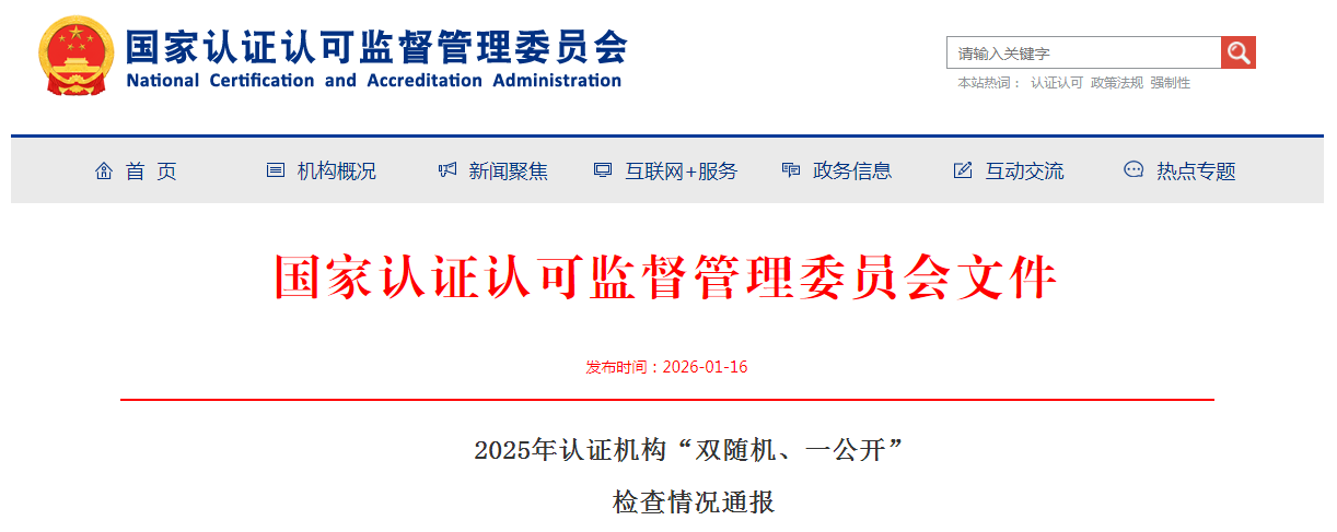2025年認(rèn)證機(jī)構(gòu)“雙隨機(jī)、一公開(kāi)”檢查情況通報(bào)
