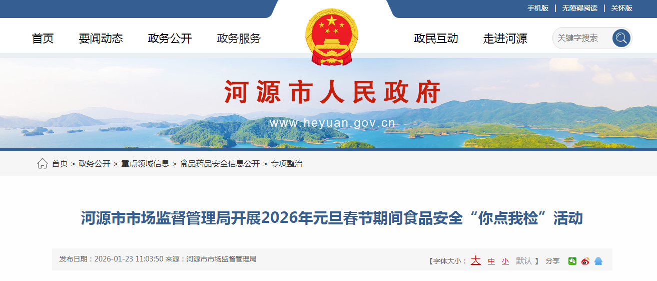 河源市市場監(jiān)督管理局開展2026年元旦春節(jié)期間食品安全“你點我檢”活動